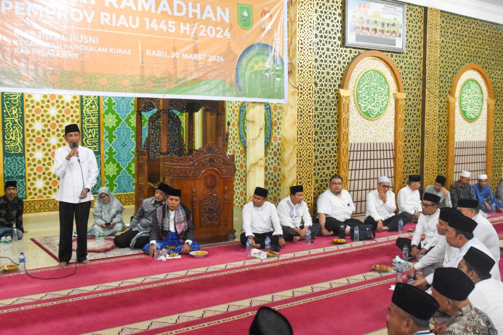Bank Riau Kepri (BRK) Syariah dalam rangkaian kegiatan safari Ramadan Pemerintah Provinsi (Pemprov) Riau bertempat di Masjid Al Husni Kecamatan Pangkalan Kuras, Kabupaten Pelalawan, Rabu (20/03/2024).